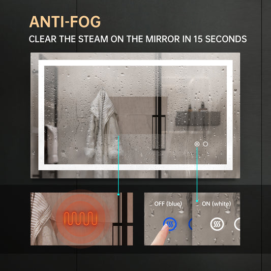 40 *24 LED Lighted Bathroom Wall Mounted Mirror with High Lumen+Anti-Fog Separately Control+Dimmer Function