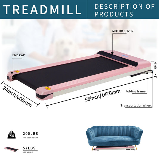 Portable Treadmill Under Desk Walking Pad Flat Slim Treadmill with LDE Display Sport APP, Running Machine for Apartment and Small Space without Assembling
